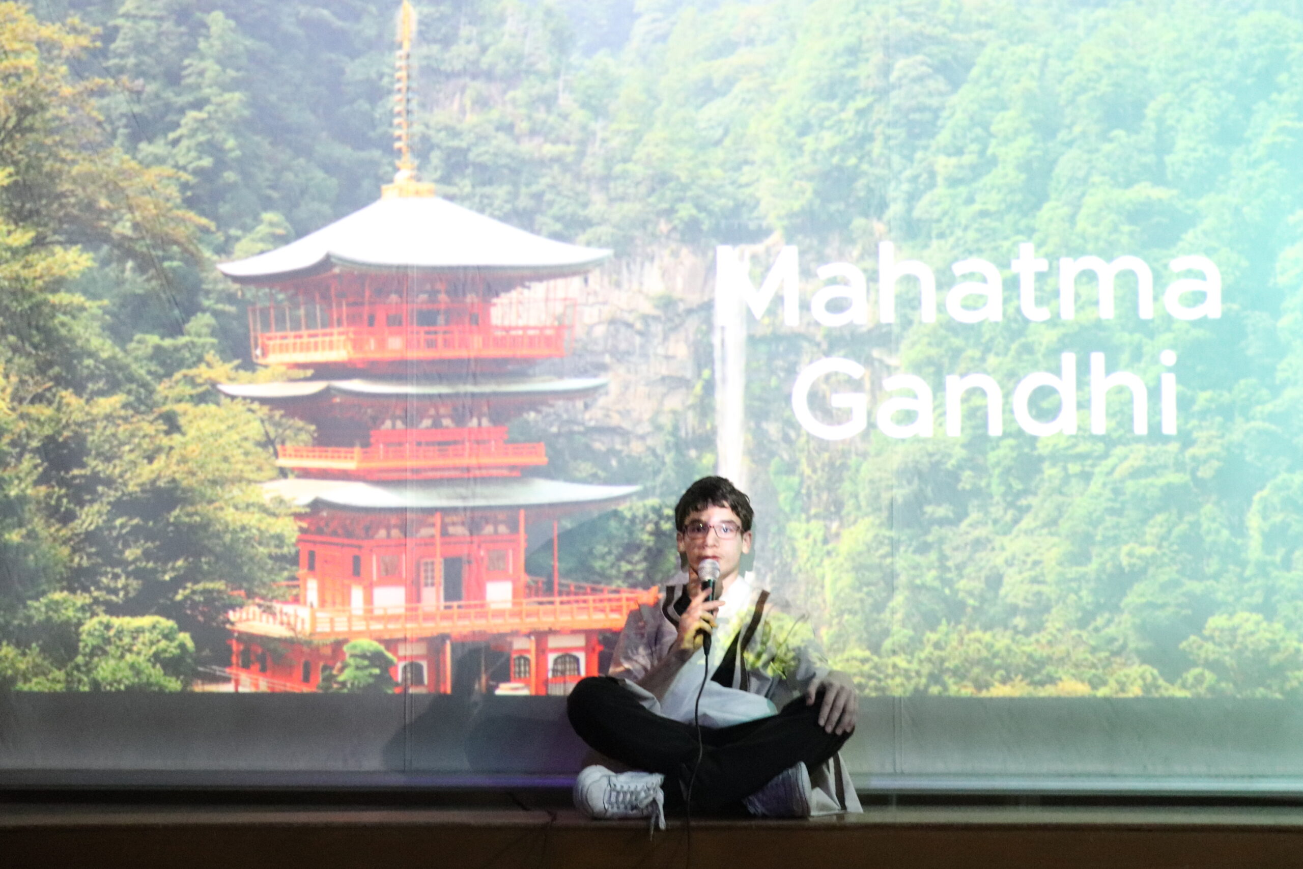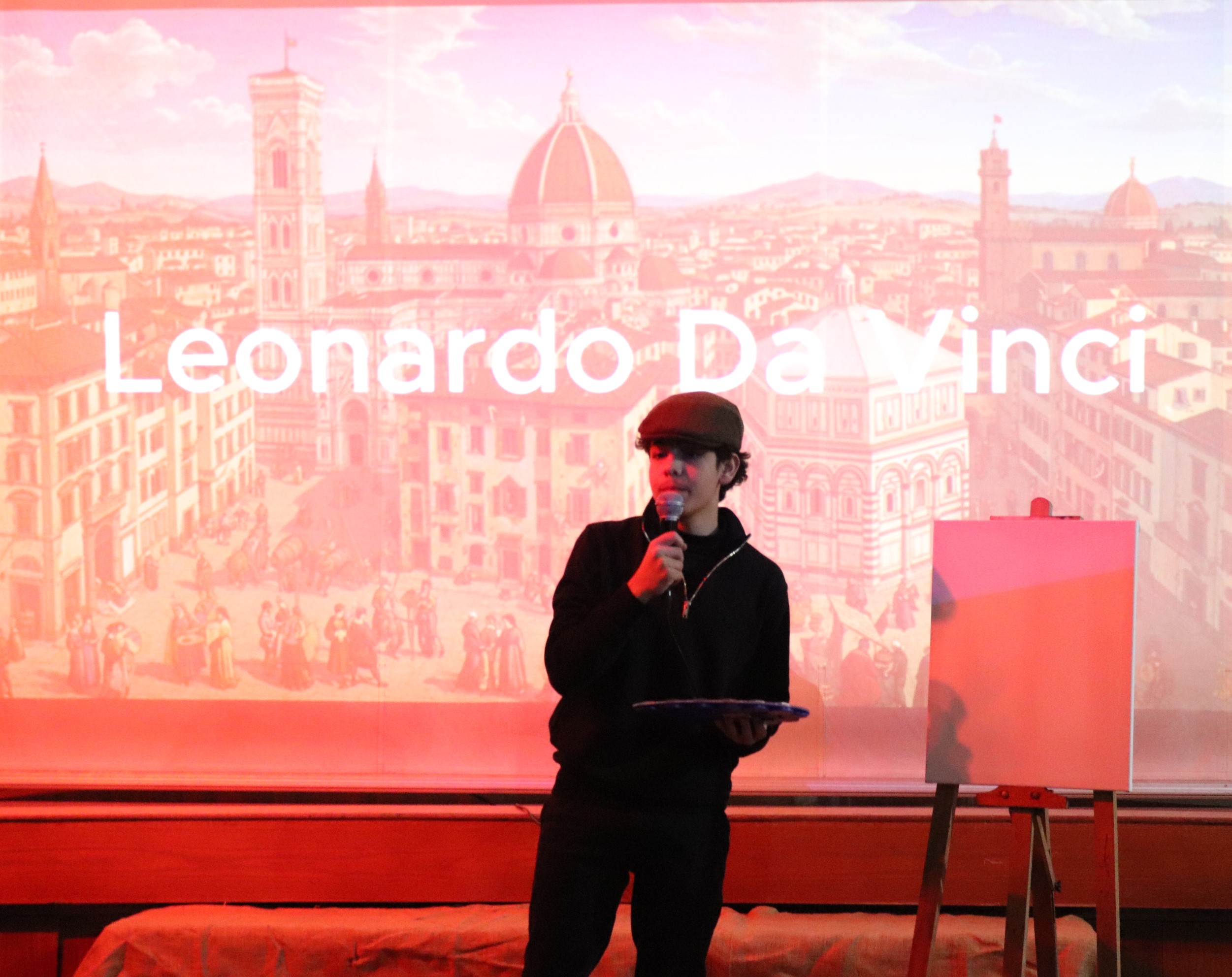 The presentation was very special because it was researched by the students. They dressed in the characters they portrayed. The backgrounds were chosen to represent the character in question. The accompanying music fitted the character exactly. And there were props coming and going as emphasis about the time-period of each historical character. All students were involved, and they did their job to perfection.